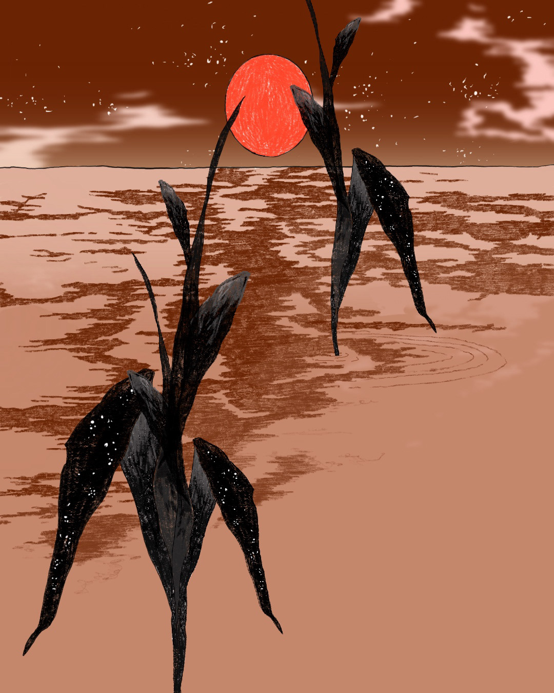 I illustrated and wrote the Nightly encounters series, based on the dreams and nocturnal encounters I had with non-human individuals. The works, including illustrations and poems, were presented in the Visual Narratives course exhibition in Väre in Spring 2022.